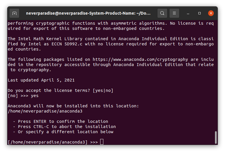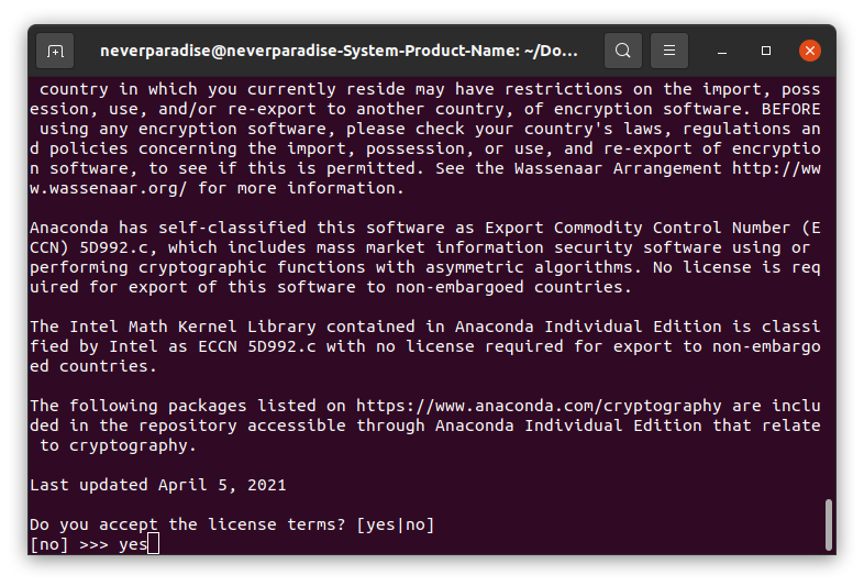 그러면 설치파일이 실행이 되는데 스페이스 바를 쭉 누르다가 yes|no 가 보일 때 쯤, yes를 입력합니다.