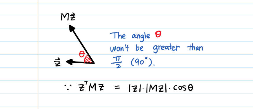 - 벡터를 same-general (90도 이하) 방향으로 선형변환하게 된다.