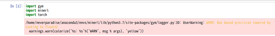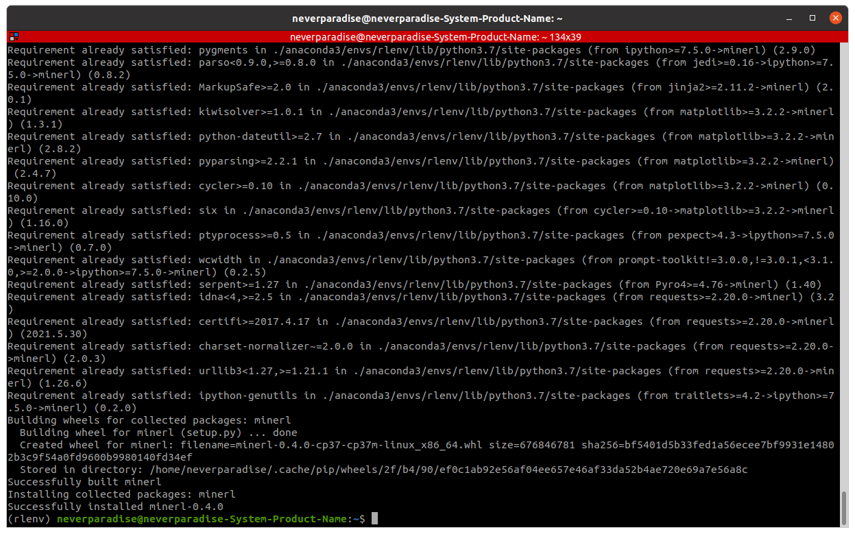 pip install gym minerl==0.3.7조금 기다리시면 설치가 완료됩니다.