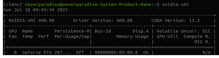 터미널에 nvidia-smi를 입력해서 CUDA 버전을 확인합니다.