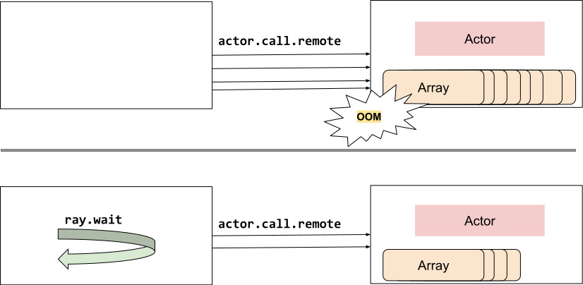 예제 2-2처럼 ray.get(data_references)를 사용해서 결과에 접근하는 것을 blocking 이라고 부릅니다. 즉, 모든 결과가 끝날 때까지는 값을 출력하는 것이 막혀있는 것이죠. 이는 Head node의 driver process가 모든 결과들이 끝날 때 까지 기다린다는 의미입니다. 지금의 경우에는 큰 문제가 되지 않지만 각 데이터를 처리하는 시간이 몇 분씩 걸릴 수도 있습니다. 이 때, 저희는 driver process가 대기하기보다는 다른 task들에 대해서 자유롭게 동작하기를 바랍니다. 드라이버가 작업이나 데이터가 들어올 때마다 처리하는 것이죠!