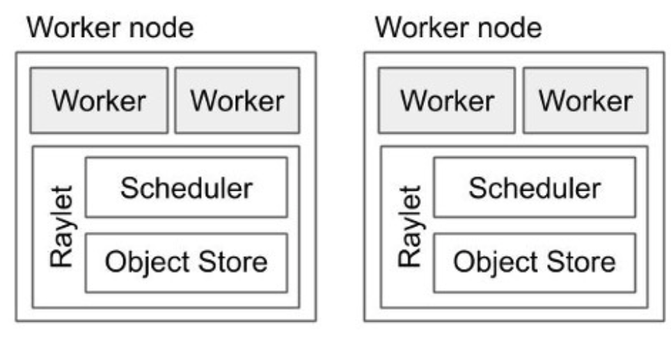 Figure: Worker node Worker process, Raylet