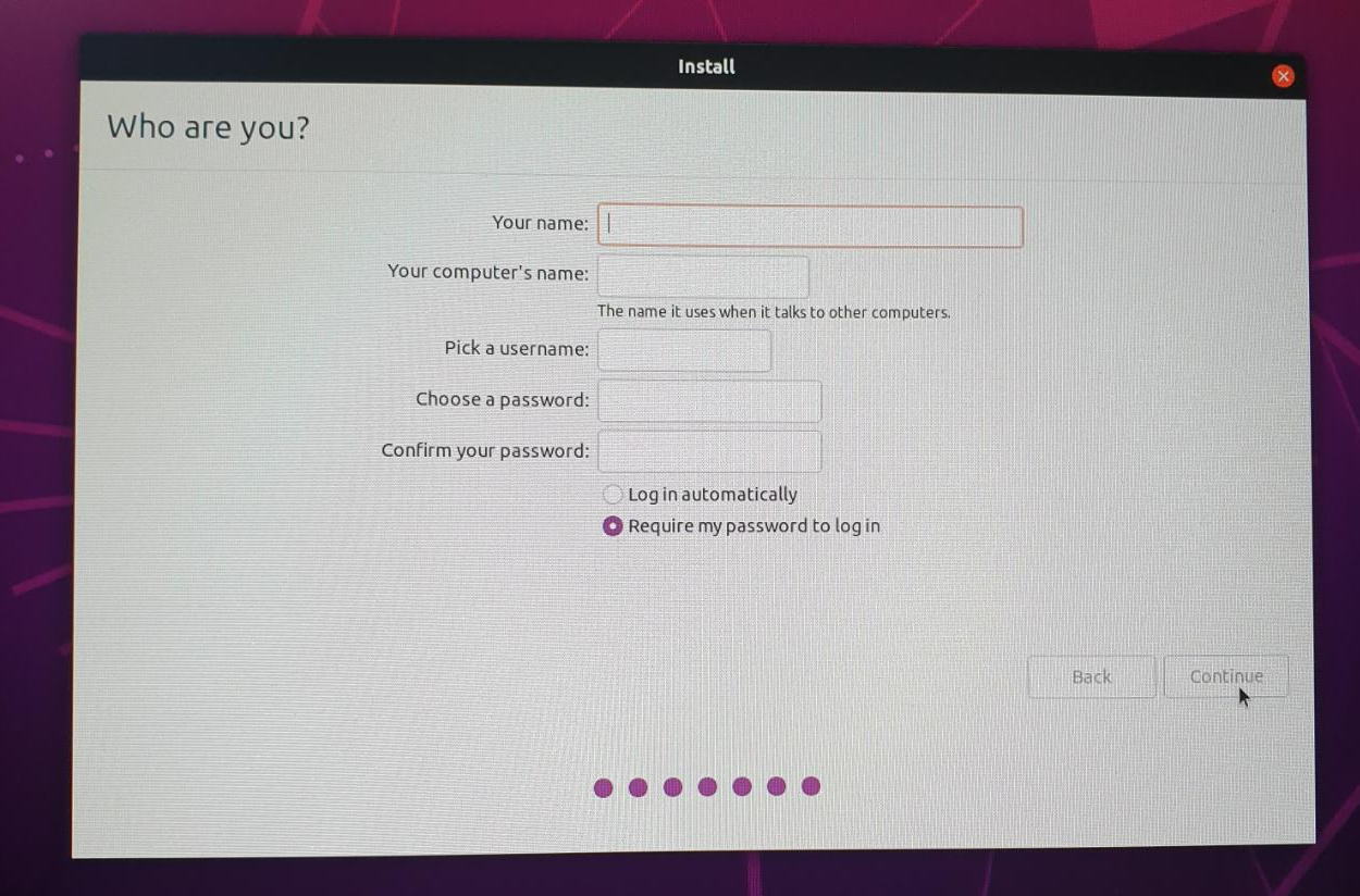 이제 원하는 이름과 비밀번호를 설정한 후 설치를 진행하게 됩니다.